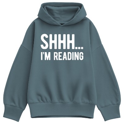 Women's - Instant Message - Shhh I'm Reading Oversized Fleece Hoodie Sweatshirt