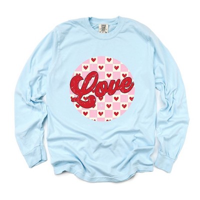 Simply Sage Market Women's Retro Love Checkered Circle Long Sleeve Garment Dyed Tee
