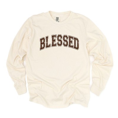 Simply Sage Market Women's Blessed Varsity Long Sleeve Garment Dyed Tee