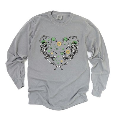 Simply Sage Market Women's Skeleton St. Patrick's Heart Long Sleeve Garment Dyed Tee
