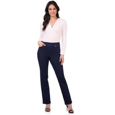 Rekucci Women's Secret Figure Pull-On Straight Leg Jeans – Mid-Rise, Stretch Denim, Slimming Fit, Sculpting & Comfortable Everyday Style