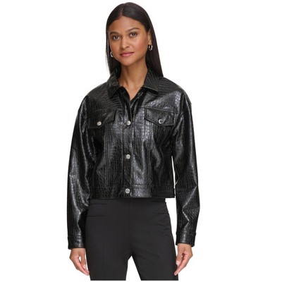 Calvin Klein Womens Faux Crocodile Cropped Jacket