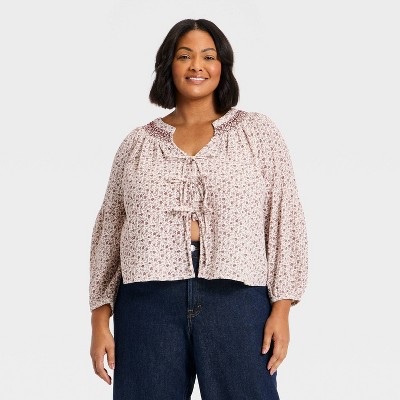 Women's Puff Long Sleeve Tie-Front Blouse - A New Day™