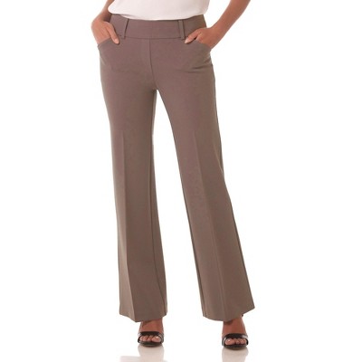 Slickblue Women's High Waist Scuba Knit Pants, Zip Fly with Button Closure, Stretch Fit, Stone Color, Size S-L