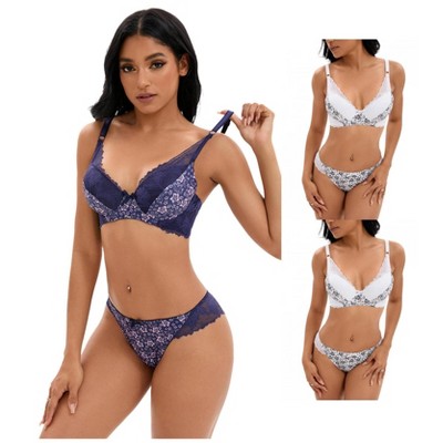 INSPIRE CHIC Women's Floral Mesh Push-Up Underwire Lace Bra and Underwear Sets 2 Pieces