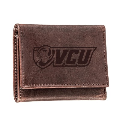 Evergreen NCAA VCU Rams Brown Leather Trifold Wallet Officially Licensed with Gift Box