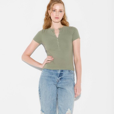 Women's Long Sleeve V-Neck Henley Shirt - Wild Fable™