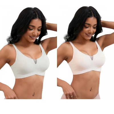 INSPIRE CHIC 2 Pcs Women's Mesh Wirefree Adjustable Straps Padded Comfortable Push Up Bras