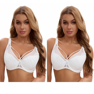 INSPIRE CHIC Women's Lace Mesh Full Coverage Underwire Soft Cup Light and Breathable Push Up Bras 2 Packs