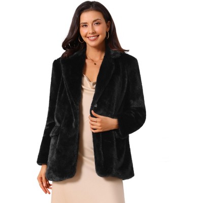 INSPIRE CHIC Women's Faux Fur Winter Open Front Notch Lapel Long Sleeve Fluffy One Button Coat