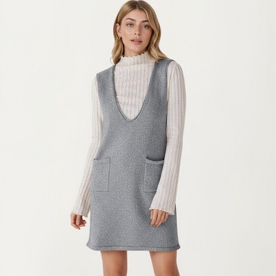 Anna-Kaci Women's Sleeveless V-Neck Shift Fashion Dress with Front Patch Pockets