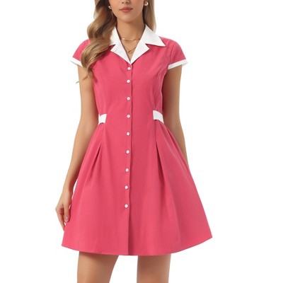 Allegra K Women's Vintage Button Down Flat Collar Belted Office Mini Shirt Dress