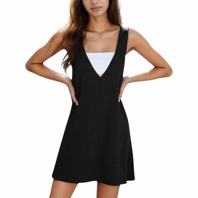 Anna-Kaci Women's Sleeveless V-Neck Mini Jumper Dress with Ribbed Knit Texture and A-Line Silhouette