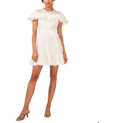 CeCe Womens Belted Ruffled Mini Fit & Flare Dress