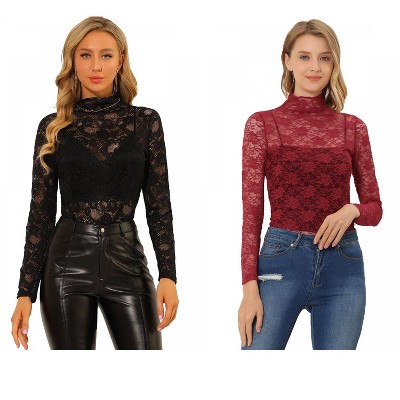 INSPIRE CHIC Women's Sheer Mesh Long Sleeve Button Down Shirts 2 Packs