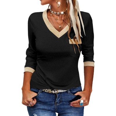 INSPIRE CHIC Women's Casual Vintage Velvet Crew Neck Long Sleeve T-shirts 2 Packs