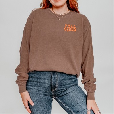 Simply Sage Market Embroidered Fall Vibes Retro Garment Dyed Long Sleeve