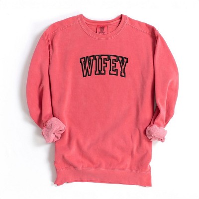 Simply Sage Market Women's Garment Dyed Graphic Sweatshirt Embroidered Wifey Arched Varsity