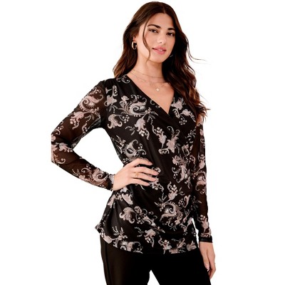 Roaman's V-Neck Mesh Blouse