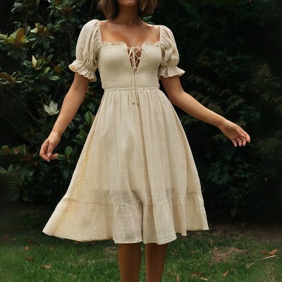 Women's Back Tie Midi Dress Sleeveless Ruffle Sleeve Elegant Bodycon Dress for Women