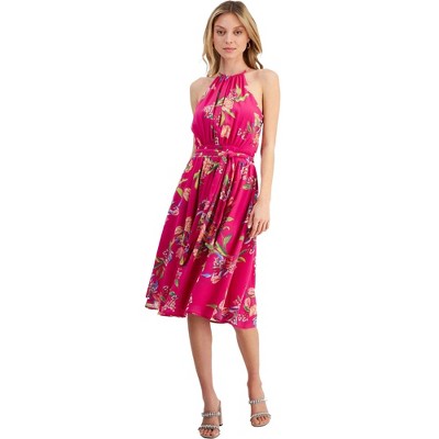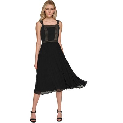 Tommy Hilfiger Womens Trellis Pleated Midi Dress