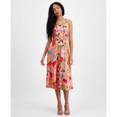 Adrianna Papell Womens Party Floral Midi Cocktail Dress
