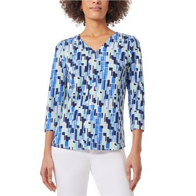 Jones New York Womens Printed 2/4 Sleeve Knit Blouse