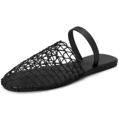 BLISSFUL STEP Women's Slip On Mesh Flats Hollow Braided Slides Sandals