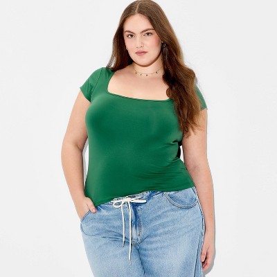 Women's Long Sleeve Sqauare Neck Mesh Top - Wild Fable™