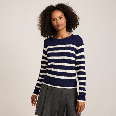 Lands' End Women's Cropped Fine Gauge Crew Neck Cardigan Sweater