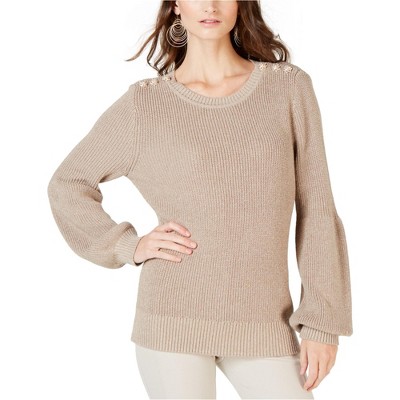 I.N.C International Concepts Womens Faux-Pearl Pullover Sweater, gray, Large