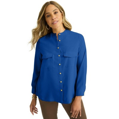 Jessica London Button-Front Chest Pocket Blouse
