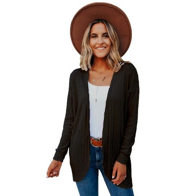 Women's Long Sleeve Open Front Knitted Crop Sweater Cardigan Drop Shoulder Knit Bolero Shrug