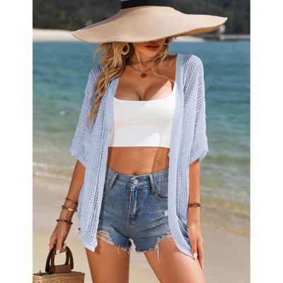 Coolmee Women's Short Sleeve Cardigans Summer Open Front Hollowed Out Shrug Sweaters Knit Sweater Tops Lightweight Cardigans S Light Blue