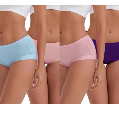 INSPIRE CHIC Women's Mid-Waisted Modal Solid Cotton Soft Breathable Full Coverage Briefs 4 Packs