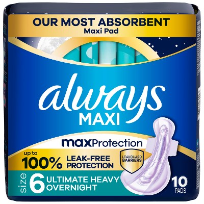 Always Maxi Protexr Extra Heavy Overnight Extra Long Menstrual Pads - 10ct
