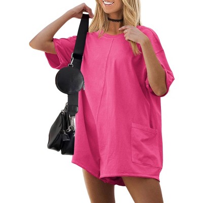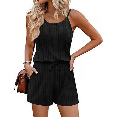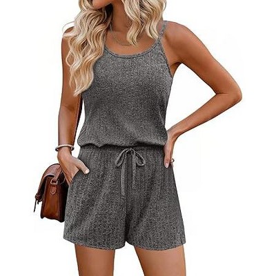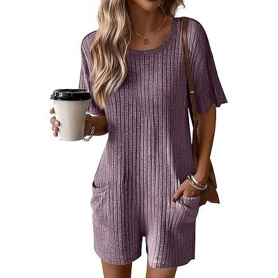 Ekouaer Rompers for Women Casual Ribbed Short Sleeve T-Shirt Tee Romper Summer Outfits with Pockets