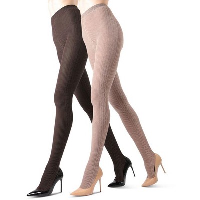 Memoi Women's 2 Pair Side Cable Sweater Tights