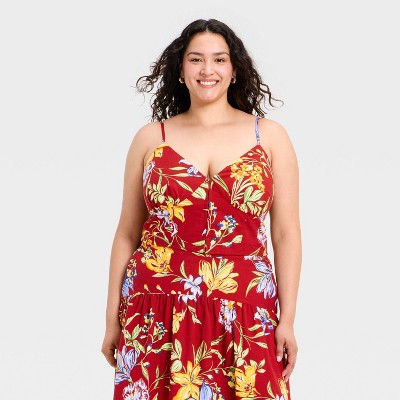 Women's Luxe Linen Corset Top - A New Day™ Red Floral
