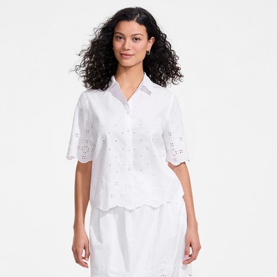 Women's Eyelet Button Down Blouse Shirt - LASCANA