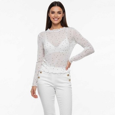 Cherie Code Women’s Mesh Dot Print Top – Slim Long-Sleeve Layer, Stretch