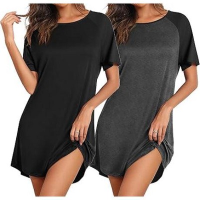 JEFFRICO Womens 2 Pack Nightgowns Short Sleeve Sleepwear Soft Pajama Dress Nightshirts