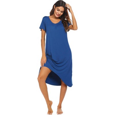 Ekouaer Nightgowns for Women Bamboo Viscose Nightgown Short Sleeve Sleep Shirts V Neck Nightshirt Soft Sleepwear