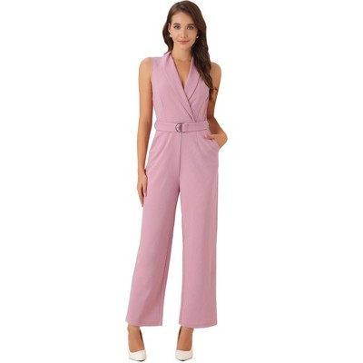 INSPIRE CHIC Women's Casual Sleeveless Shawl Collar Office Belted Cropped Jumpsuit