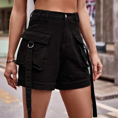 Womens Cargo Denim Shorts Summer Casual Vintage Loose Button Zipper Shorts