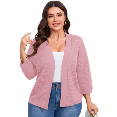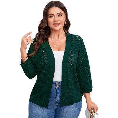 Plus Size Open Front Knit Cardigan 3/4 Sleeve Lightweight Breathable Casual Sweater Cardigan