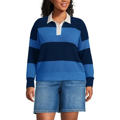 Lands' End Women's Drifter Rugby with Woven Collar Sweater