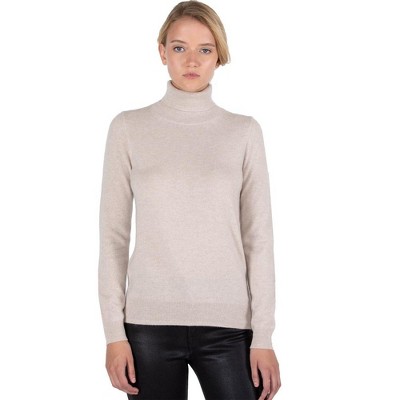 JENNIE LIU Women's 100% Pure Cashmere Long Sleeve Turtleneck Pullover Sweater
