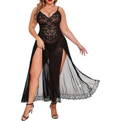 Avidlove Lingerie for Women Black Lace Babydoll Dress Long Nightgowns Sheer Nighty Chemise