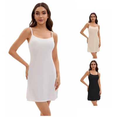 INSPIRE CHIC Women's 3 Packs Adjustable Spaghetti Strap Cami Full Slips Tummy Control Under Dress Nightwear